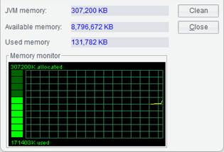 Click “Clean” button and the system will invoke gc() method to run the garbage collector, and the virtual machine will recycle the trashed memory space.