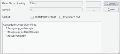Note: Select “Save to” to save the target Excel directory and the result .rptx files in the specified directory.