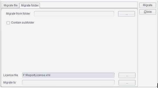 License file: Specify the license file needed for migrating a RaqReport file (.rpx).