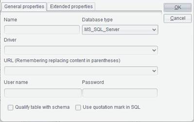 Extended properties: Besides the above general properties, you can configure more parameters for a database on this tab. Different databases have different parameters in the extended properties, which are automatically added according to database types after general properties are configured. Some databases, such as Access, don’t require extended parameters.