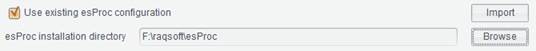 Check “Use existing esProc configuration” checkbox to specify the existing esProc directory and read esProc options configurations.
