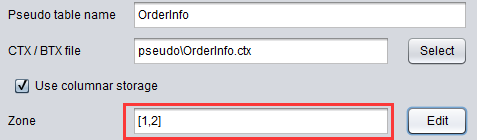 Click Select to open any zone table in the pseudo folder, such as 1.OrderInfo.ctx.