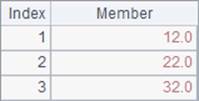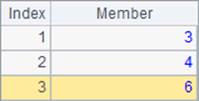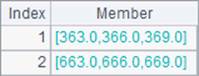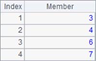 When A is a matrix, the function returns an array consisting of ordinal numbers of the non-zero members in the matrix; the search begins from the first columns. For example, in the matrix defined in line 3 in the above cellset code, positions of the first columns are 1, 2 and 3 respectively, and those of the second columns are 4, 5 and 6 respectively, and so on. When parameter n is absent, the function only returns the position of the first non-zero, non-null member, as B3 does. Its result is as follows: