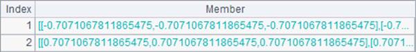 Both I() function and eye() function can be used to generate a unit matrix. A unit matrix is a matrix where the main diagonal element is equal to 1 and the remaining elements are 0. Different of the two functions are that I() function can only define a square matrix. Results of A1, A2 and B2 in the above cellset code are as follows: