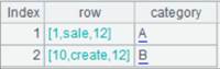 <xml> <row category="A"> <DEPTID>1</DEPTID> <DEPTNAME>sale</DEPTNAME> <FATHER>12</FATHER> </row> <row category="B"> <DEPTID>10</DEPTID> <DEPTNAME>create</DEPTNAME> <FATHER>12</FATHER> </row> </xml> |