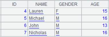 =demo.query("select * from STUDENTS1") |