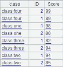 =demo.query("select top 9 * from SCORES").sort(SCORE) |