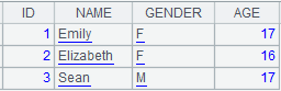 =demo.query("select top 3 * from STUDENTS") |