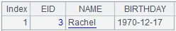 =demo.query("select top 10 EID,NAME,BIRTHDAY from EMPLOYEE") |