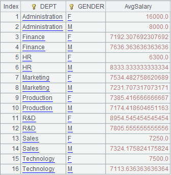 =A2.cgroups(DEPT,GENDER;avg(SALARY):AvgSalary;;A5,A7) |