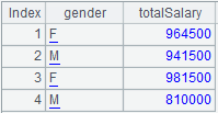 =A4.groups(GENDER:gender;sum(SALARY):totalSalary) |
