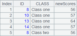 =A1.new(#2:ID,CLASS,SCORE+5:newScores) |
