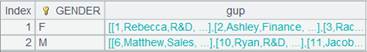 Group cursor A1 by GENDER field, compute average SALARY value in each group and return a cursor; below is data in the result cursor: