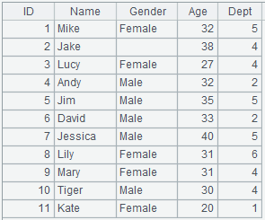 =demo.query("select EID,NAME,GENDER,DEPT,SALARY from employee") |