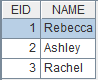 =demo.query("select top 3 EID,NAME from EMPLOYEE").keys(EID) |