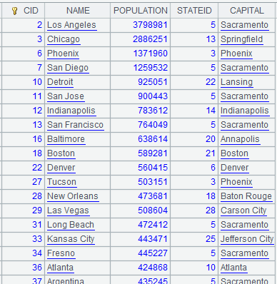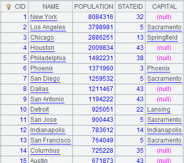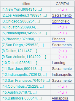Associate CITIES table and STATECAPITAL table through the foreign key, during which default parameter K is STATEID, the key of STATECAPTITAL, and add STATECAPITAL’s CAPITAL field to CITIES to generate a new table sequence.