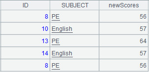 =A3.new(#2:ID,SUBJECT,SCORE+5:newScores) |