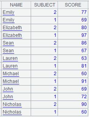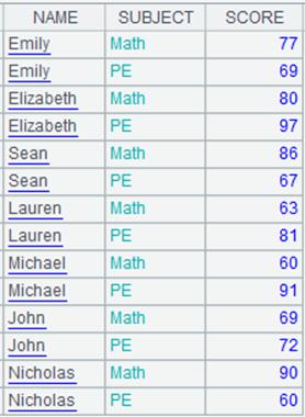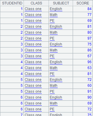 =A1.news(A2:Class:StudentID,NAME,SUBJECT,SCORE) |