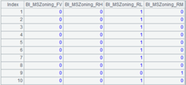 Split variable “MSZoning” into multiple binary variables. A2(1) Splitting result; A2(2) Splitting process records Rec. |