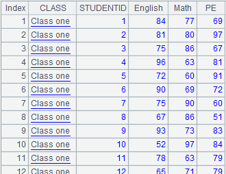 =A1.pivot(CLASS:ClassNew,STUDENTID;SUBJECT,SCORE;"English":"new_English","Math","PE") |