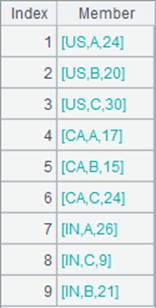 =A1.groupc(Country;;) |