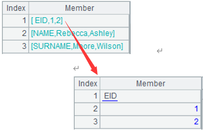 The 2nd member value has blank spaces at both ends; the 3rd member value is an empty string |
