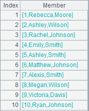 =connect("demo").query("select top 10 EID,NAME,SURNAME from EMPLOYEE") |