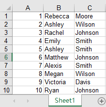 With @a option, when the target sheet in the target Excel file exists, write data in the end using the format of the existing last row; when parameter s that specifies the sheet name is absent, append data to the end of the first sheet; below is the content after data appending: