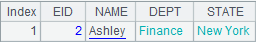 =demo.query("select top 10 EID,NAME,DEPT,STATE from EMPLOYEE") |