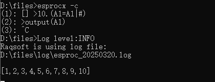 After starting the execution of esprocx –c, the following script is input: